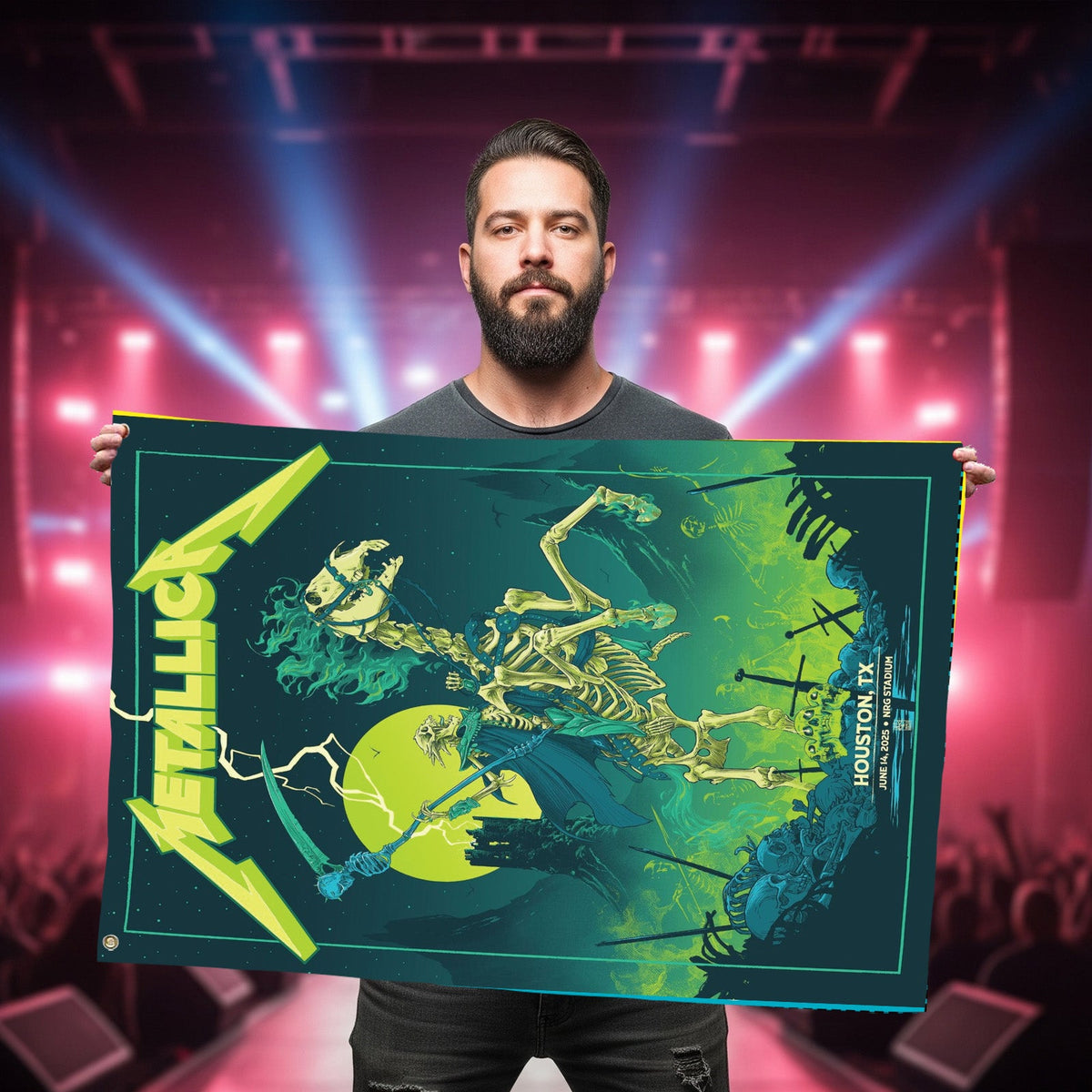 This limited edition Metallica flag is a must-have for fans who rocked the Houston show or collectors of rare concert memorabilia. Display it proudly outside your home, in your garage, or studio to keep the spirit of metal alive! 🎸