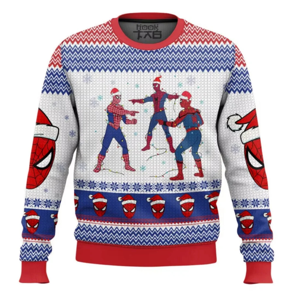 Swing into the season with a bold spider-hero inspired holiday design. This ugly Christmas sweater features a vivid 3D knit-look print that pops in party photos and cozy family pics. Unisex sizing fits men, women, and kids.