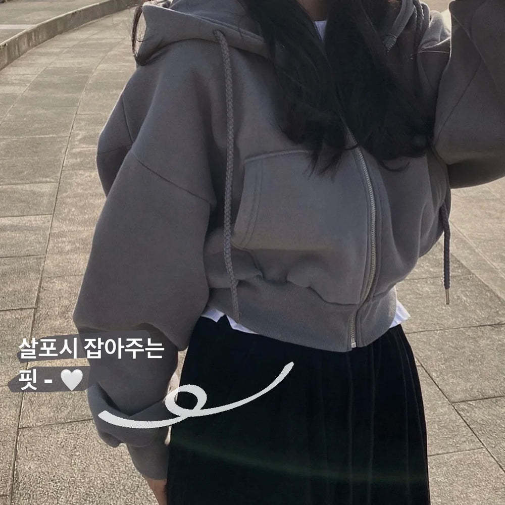 Meet your new go-to layer: a cropped, oversized zip-up hoodie with long sleeves and a relaxed streetwear silhouette. Solid colors, soft fleece handfeel, and a roomy hood make it perfect for everyday casual looks—from coffee runs to gym warm-ups.